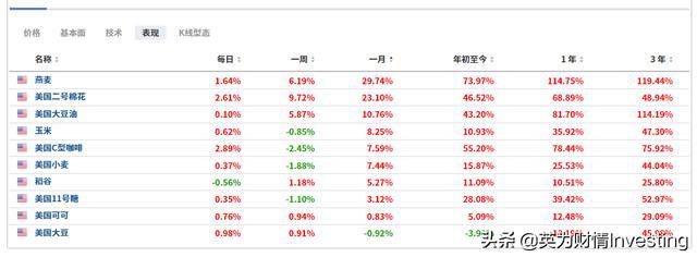 (农产品价格走势列表,来自英为财情Investing.com投资组合工具)